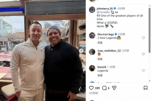特里社媒曬出與大羅的合照,配文:“羅納爾多,有史以來最偉大的球員之一,真是一位傳奇!”