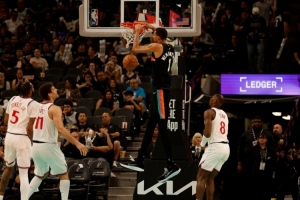 馬刺本賽季至今戰(zhàn)績(jī)?yōu)?9勝18負(fù),西部第二的位次十分穩(wěn)定。球隊(duì)場(chǎng)均得118.8分,場(chǎng)均失111.8分。上場(chǎng)比賽,馬刺主場(chǎng)115-102戰(zhàn)勝黃蜂,文班亞馬32分12籃板8助攻4蓋帽,福克斯17分6籃板4助攻,卡斯?fàn)?5分7籃板10助攻,凱爾登·約翰遜13分5籃板,科內(nèi)特10分8籃板。本場(chǎng),迪倫·哈珀和科內(nèi)特將缺席比賽。2月份以來(lái),馬刺17勝3負(fù)戰(zhàn)績(jī)彪炳。本賽季馬刺客場(chǎng)22勝11負(fù),勝率高達(dá)67%。文班亞馬展示出超強(qiáng)的統(tǒng)治力,進(jìn)入3月份法國(guó)人場(chǎng)均28.6分11.1籃板4.1蓋帽。