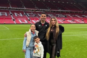體育資訊3月17日訊 曼聯中場卡塞米羅更新社媒,曬出全家在老特拉福德的合影。