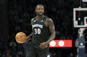 森林狼球員蘭德爾上半場發揮穩健,進攻端效率不錯,場上拼搶也十分積極。