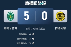 體育資訊3月18日訊 歐冠1/8決賽次回合,葡萄牙體育主場對戰博德閃耀,最終葡萄牙體育成功完成讓三追五,經過加時賽最終5-0擊敗對手,總比分5-3晉級歐冠八強。