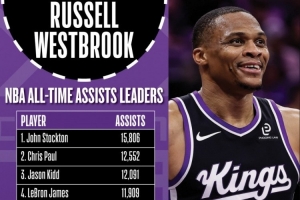 本場比賽,威少生涯助攻數有望連續超越馬克·杰克遜和納什,上升至NBA歷史第五位。