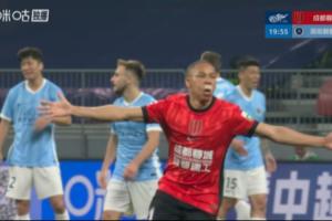 比賽第20分鐘,韋林頓·席爾瓦破門幫助蓉城1-1扳平比分,由于此前面部被姜至鵬打到出血,韋林頓·席爾瓦的鼻子下面貼了一個創可貼。