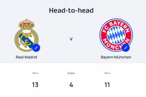 皇馬與拜仁在歐冠歷史上交手過28次,皇馬13勝4平11負占據(jù)上風(fēng),皇馬歷史上15次獲得歐冠冠軍,排列第一;拜仁6次奪冠,排名第三。
