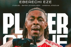 歐冠1/8決賽次回合,阿森納2-0擊敗勒沃庫森,兩回合總比分3-1取勝晉級8強。次回合比賽,埃澤打入一記精彩的世界波破門,他也被球迷票選為阿森納隊內(nèi)最佳球員。