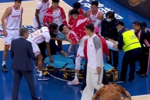 本場比賽,深圳男籃球員馮熙瑞在防守時空中對抗后重摔在地,隨后被擔(dān)架直接抬走。