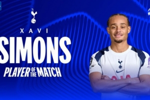 梅開二度,歐冠官方:哈維·西蒙斯當選熱刺3-2馬競全場最佳球員