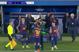 體育資訊03月19日訊 歐冠1/8決賽次回合,巴薩對(duì)陣紐卡。66分鐘,巴薩連換三人,坎塞洛、萊萬(wàn)、費(fèi)爾明被換下,奧爾莫、費(fèi)蘭、18歲埃斯帕特出場(chǎng)。