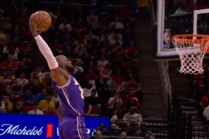 體育資訊3月19日訊 湖人客場再戰火箭,截至發稿詹姆斯已經上演3次炸裂扣籃。