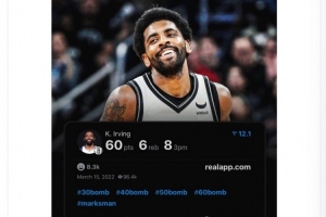 在2022年的3月17日,歐文得到60分,籃網(wǎng)隊(duì)史單場(chǎng)比賽新紀(jì)錄。
