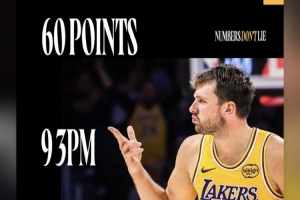 本場比賽,東契奇首發出戰37分36秒,30投18中,三分17中9,罰球19中15,砍下60分7籃板3助攻5搶斷(末節20分!),率隊取勝!