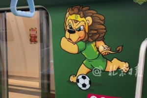 除主題車站外,北京地鐵還在3號(hào)線打造了一列國(guó)安球員主題列車。車廂以綠色為主色調(diào),車頂裝飾有國(guó)安隊(duì)徽,腳下的地面也變成了綠茵場(chǎng),車廂內(nèi)隨處可見國(guó)安球員的頭像和球隊(duì)吉祥物“京獅”。此外,座椅還特別印制了國(guó)安球員的球衣號(hào)碼,乘客可以對(duì)照號(hào)碼,尋找自己心儀球員的“專屬座位”。