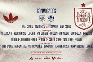 體育資訊3月20日訊 西班牙國家隊今日公布了新一期球員名單,本次名單巴薩有7人入選,人數最多(約占1/4),皇馬僅1人入選。