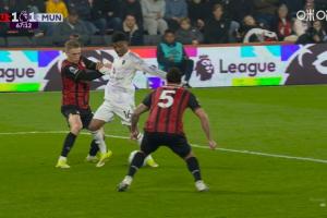 體育資訊03月21日訊 英超第31輪,曼聯(lián)客戰(zhàn)伯恩茅斯。67分鐘,阿瑪?shù)陆麉^(qū)內(nèi)倒地,裁判沒有表示。伯恩茅斯隨后發(fā)動(dòng)反擊扳平比分。
