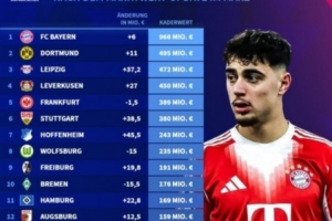 1. 拜仁慕尼黑:目前身價9.66億歐,本次更新上升600萬歐