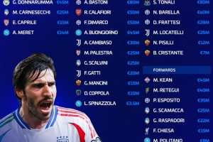 后衛:巴斯托尼(8000萬歐)、卡拉菲奧里(5000萬歐)、迪馬爾科(5000萬歐)、布翁喬爾諾(4500萬歐)、坎比亞索(3000萬歐)、斯卡爾維尼(2500萬歐)、帕萊斯特拉(2500萬歐)、加蒂(2000萬歐)、曼奇尼(1500萬歐)、迭戈·庫博拉(1000萬歐)、斯皮納佐拉(350萬歐)