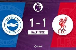 體育資訊3月21日訊 北京時間3月21日晚上20:30,英超第31輪,布萊頓坐鎮美國運通社區球場對陣利物浦。上半場,埃基蒂克傷停,維爾貝克破門,鄧克烏龍助攻凱爾凱茲破門。半場戰罷,布萊頓1-1利物浦。
