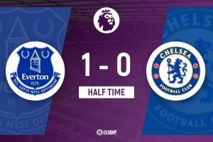 上半場(chǎng)傷停補(bǔ)時(shí)2分鐘,半場(chǎng)結(jié)束,切爾西暫0-1埃弗頓。