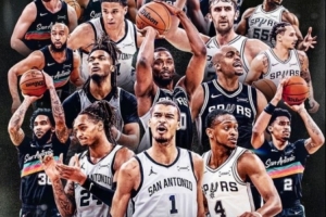 賽后,馬刺官方也曬出了全陣容的海報,并寫道:“??2026年西南賽區(qū)冠軍??。”