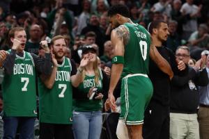 本場比賽,塔圖姆出戰27分鐘,前6投全丟,但此后頂級調整連進四球連得9分,全場他16中6拿到15分12籃板7助攻1搶斷,正負值+20!
