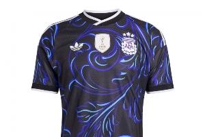 該球衣色調以黑色為主,logo白色并點綴象征阿根廷的天藍色細節。這是自2018年世界杯以來,阿根廷隊首次重新啟用黑色客場球衣。最引人注目的特征,在于通體覆蓋著一種源自繪畫藝術的圖案,整體風格充滿活力且富有藝術氣息。