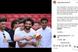 體育資訊3月25日訊 薩拉赫官宣賽季結束后離隊,他的利物浦隊友羅伯遜通過社交媒體送上告別。