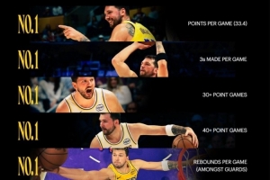 東契奇場均分/三分數/30+40+場次皆Top1 湖人官方:數據不會說謊