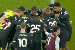 比賽下半場,落后的主隊(duì)維拉正急于開球時(shí),切爾西眾將集體來到中圈,將球團(tuán)團(tuán)圍住,隨后一同加油喊話,維拉球員對此很是不滿,不斷向主裁判投訴這一行為。國外解說員也表示,這一舉動(dòng)“有些荒唐”。