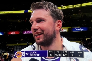 體育資訊3月26日訊 NBA常規(guī)賽,湖人客場137-130擊敗步行者,東契奇賽后在場邊接受了媒體采訪。
