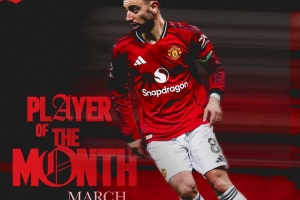 體育資訊3月27日訊 曼聯(lián)官方宣布,B費(fèi)當(dāng)選3月份隊(duì)內(nèi)最佳球員。