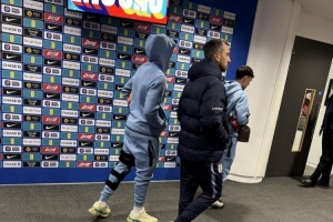 希望無大礙!馬杜埃凱左膝戴著護具離開溫布利球場