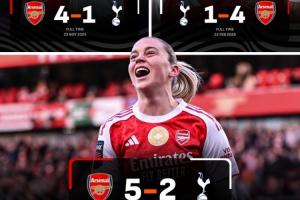 體育資訊03月29日訊 英女足第19輪北倫敦德比,阿森納女足5-2輕取熱刺女足。本賽季,阿森納男女足在北倫敦德比中展現(xiàn)出統(tǒng)治級表現(xiàn),雙雙取得大勝,成為德比戰(zhàn)的絕對主角。
