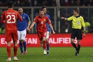 2022年3月,世界杯附加賽半決賽,意大利補(bǔ)時(shí)遭絕殺,0-1爆冷不敵北馬其頓,無(wú)緣2022卡塔爾世界杯。那場(chǎng)比賽的主裁判,正是法國(guó)主裁蒂爾潘。