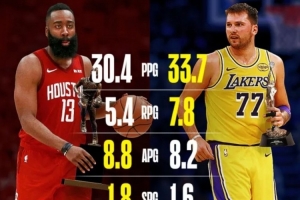 東契奇本季場均33.7分7.8板8.2助 MVP賽季哈登30.4分5.4板8.8助