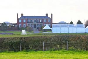 上周工人們在魯尼位于柴郡的價(jià)值2000萬英鎊的豪宅花園里搭建了這個(gè)大型結(jié)構(gòu),昨天還安裝了戶外取暖設(shè)備。