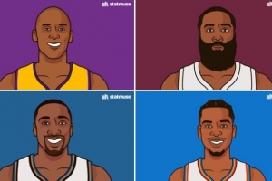 賽后數據媒體StatMuse分享了一個數據:只有4名后衛生涯做到多次40+分且25+罰球。