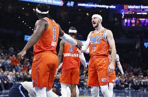 亞歷山大:“總得有個平衡。在第四節(jié)的最后一攻,我迎著兩個人投籃,僅僅是因為我感覺很好。所以這里總有個平衡。但我就是信任我的隊友,我每天都能看到他們的努力,我看到了他們在籃球場上的能力。我看到了他們打得多努力,有多拼,我看到了他們做出的所有不被注意的微小貢獻。當(dāng)他們處于那些時刻,并且準(zhǔn)備好去迎接那些時刻時,他們配得上這些機會。歸根結(jié)底,如果他處于空位,他就會去投,就好像他之前連進了10個一樣。這就是我欣賞卡魯索的地方。每一次他得到投籃機會,他都會給自己一個進球的機會。他已經(jīng)證明了這一點,他可能投丟了前幾個,但今晚他投進了一個關(guān)鍵球。在去年的季后賽中,他投進了無數(shù)個關(guān)鍵球。他證明了他配得上這些時刻,他享受這些時刻,并帶著十足的信心去迎接它們。所以他今晚投進這一球,我一點也不驚訝。”