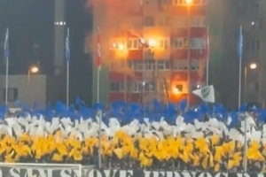 主場迎戰意大利,波黑球迷在球場旁建筑物燃放焰火和煙花加油助威