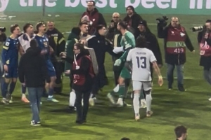 點球大戰后,意大利國門多納魯馬疑似與波黑球員起了沖突,博努奇趕緊飛奔前去勸架,哲科也上前安慰,拉開了多納魯馬。