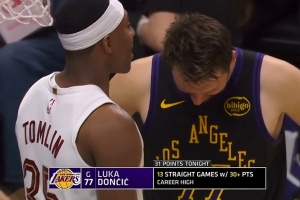 體育資訊4月1日訊 NBA常規(guī)賽,湖人對(duì)陣騎士,東契奇已經(jīng)得到31分。