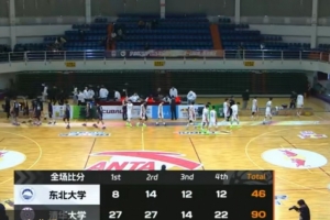 末節比賽,東北大學進攻回暖,連投帶罰拿分努力追趕,但清華大學外線開火,許熙桐和何文煒先后飆中三分擴大領先,東北大學火力無法延續,清華大學繼續拉開分差,最終,清華大學90-46以44分的優勢大勝東北大學。