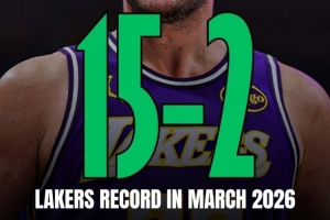 狀態(tài)正佳!湖人三月份打了17場比賽 戰(zhàn)績15勝2負(fù)