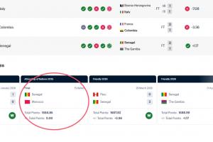 那又有吧友好奇了,那為什么國足在這次友誼賽中輸球會被扣分,塞內加爾卻沒有因非洲杯決賽被判負扣分(顯示為0分,而非負分)呢?