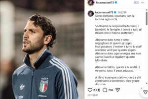 體育資訊4月2日訊 在意大利無緣世界杯正賽后,意大利國腳洛卡特利更新了社交媒體。