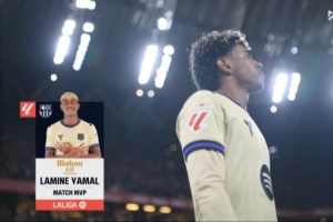 體育資訊3月8日訊 西甲第27輪,巴薩客場1-0戰勝畢爾巴鄂競技。賽后,巴薩攻擊手亞馬爾當選全場最佳球員。