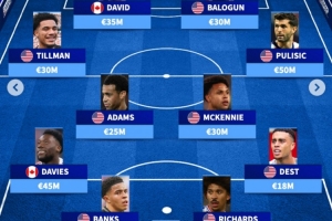 中場:蒂爾曼(3000萬歐)、泰勒·亞當斯(2500萬歐)、麥肯尼(3000萬歐)、普利西奇(5000萬歐)