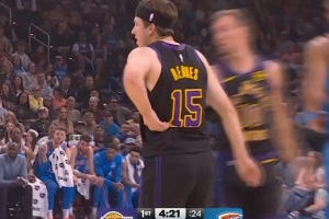 據(jù)湖人隊(duì)記Dave McMenamin報(bào)道,里夫斯在暫停結(jié)束后直接回到更衣室接受檢查。