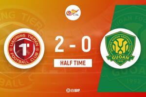 第45分鐘,姆本扎傳中,熱菲尼奧包抄推射破門,遼寧鐵人2-0北京國安。↓