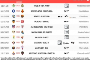 體育資訊4月4日訊 西甲官方公布了第32輪比賽的開(kāi)球時(shí)間,4月25日3點(diǎn)貝蒂斯vs皇馬,4月25日22點(diǎn)15分赫塔費(fèi)vs巴薩。