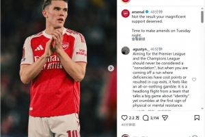 阿森納社媒向球迷道歉:你們的支持未換來應得的結果,我們會彌補